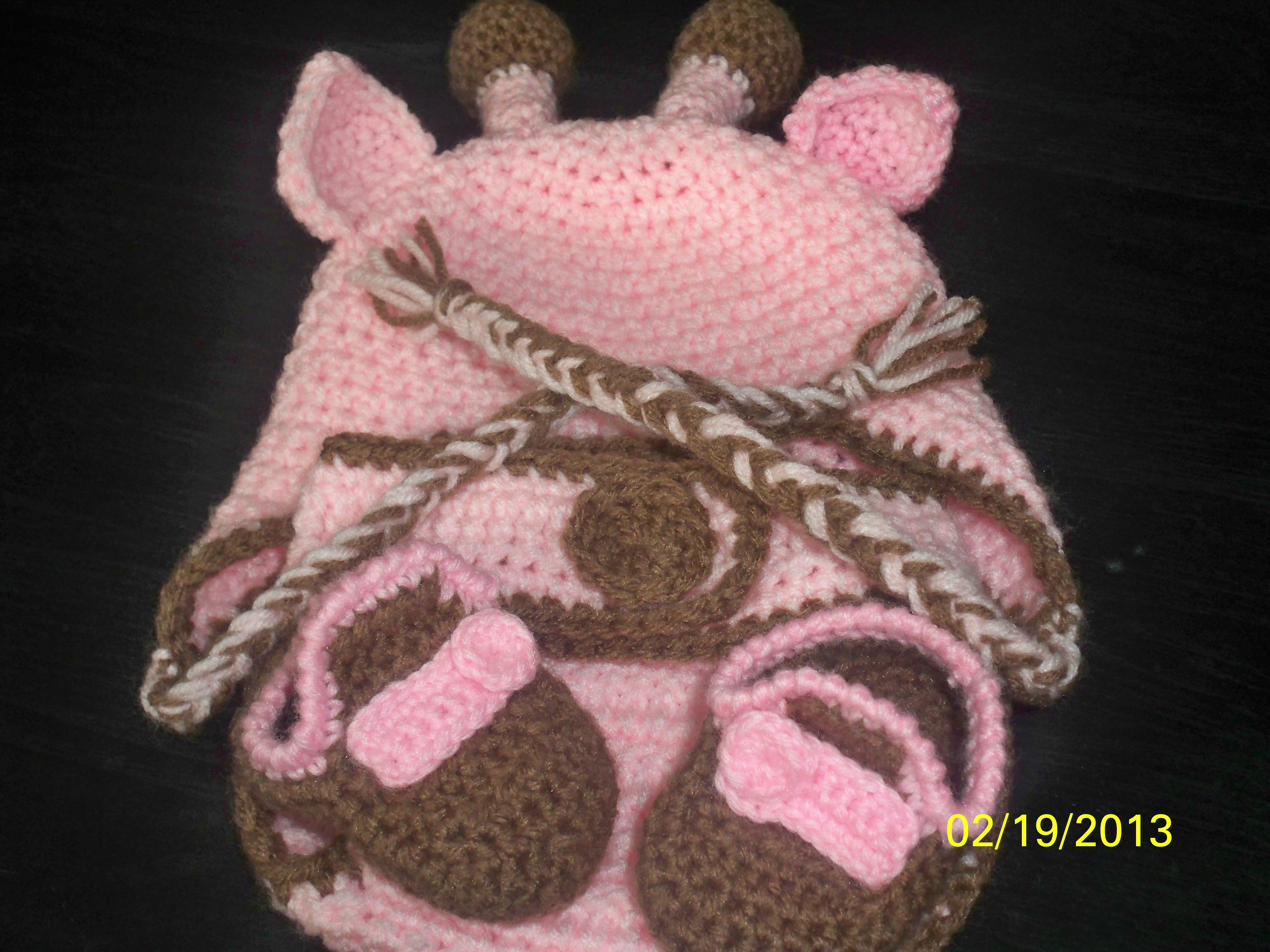 Hand made Giraffe set Includes Hat with horns (antlers) and ears, with or with out ear flaps and braids Diaper cover Booties your choice of color(s) please leave comment at time of ordering as to size color(s) and style