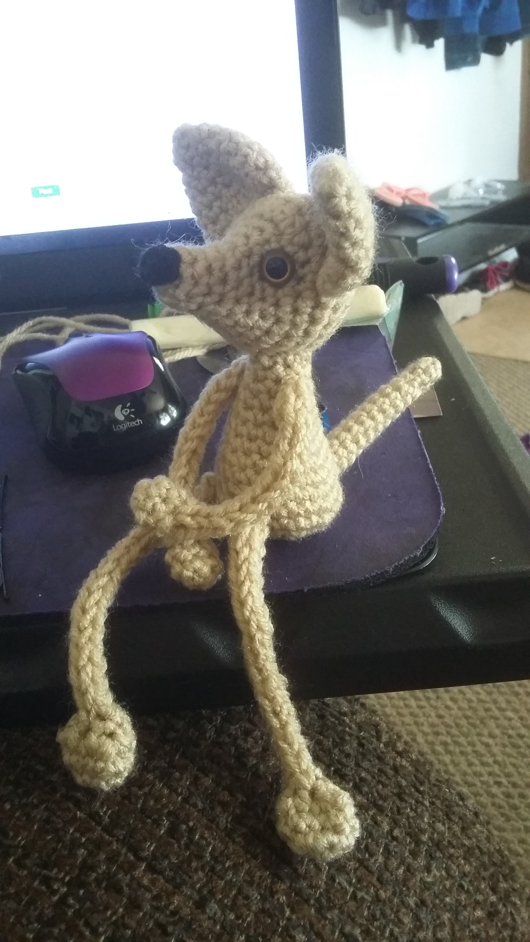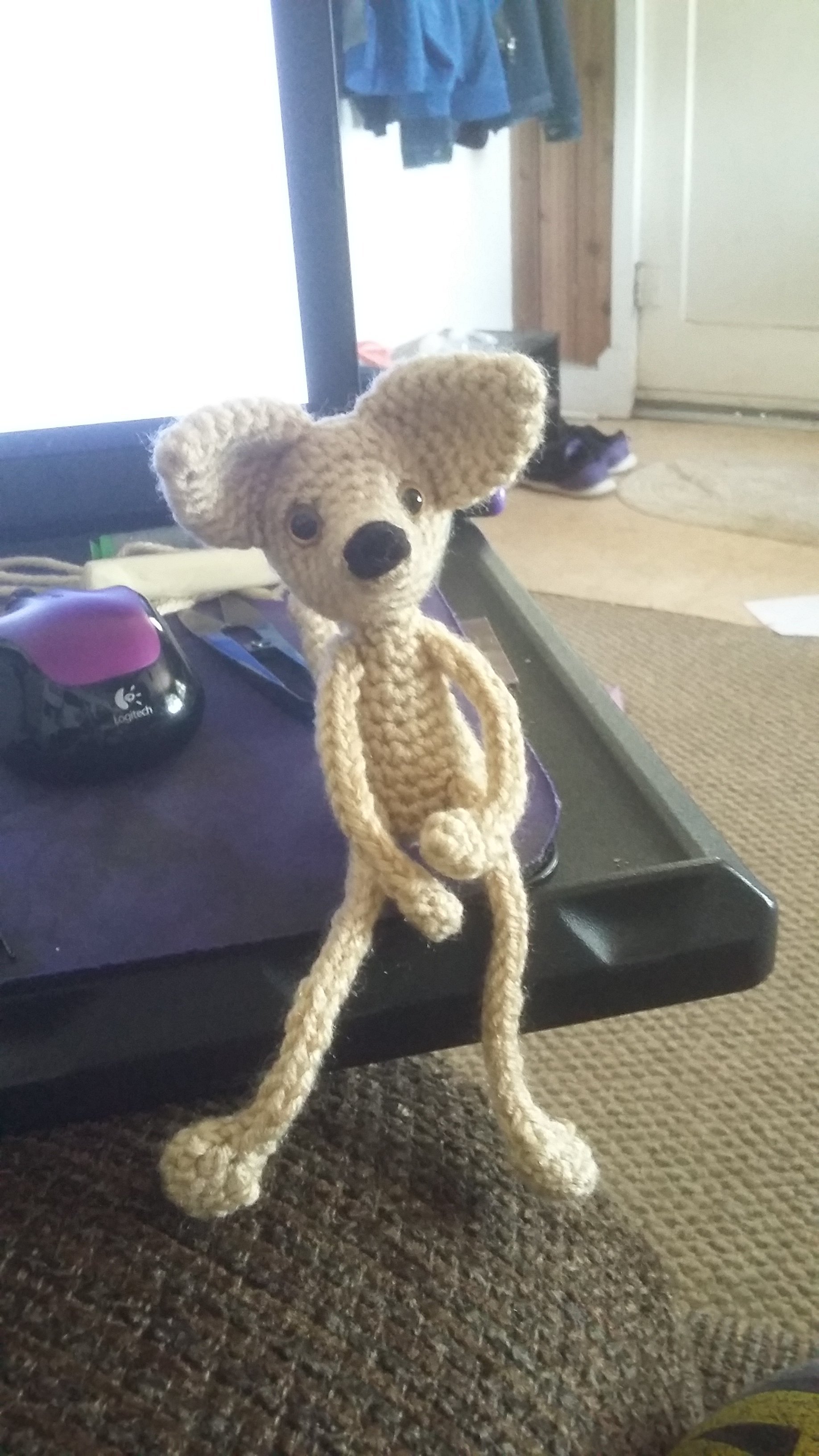 Taco is a sweet little dog, very playful. He is part of the floppy limb line of animals. Made with red heart yarn, safety eyes and fiberfill. Comes from a pet free smoke free work space. Made by hand.